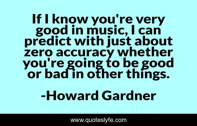 This page presents the quote "If I know you're very good in music, I can predict with just about zero accuracy whether you're going to be good or bad in other things.". Author of this quote is Howard Gardner. .