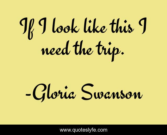 This page presents the quote "If I look like this I need the trip.". Author of this quote is Gloria Swanson. This quote is about quips, comments,.