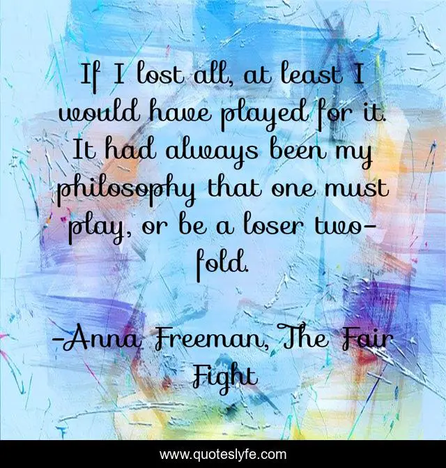 "Anna Freeman, The Fair Fight Quotes." Quoteslyfe.com, 2025. Sun. 07 Dec. 2025. <https://www.quoteslyfe.com/quote/If-I-lost-all-at-least-I-246355>.