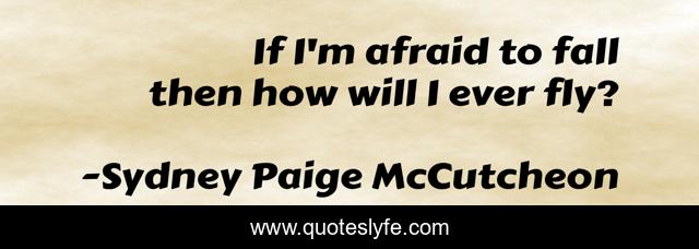 This page presents the quote "If I'm afraid to fall then how will I ever fly?". Author of this quote is Sydney Paige McCutcheon. This quote is about action, introspective, fear, courage, feeling-inspired,.