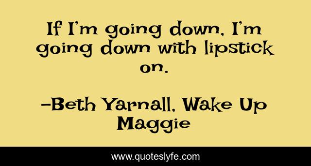 This page presents the quote "If I’m going down, I’m going down with lipstick on.". Author of this quote is Beth Yarnall, Wake Up Maggie. This quote is about mystery, humor, suspense, romance-novels,.