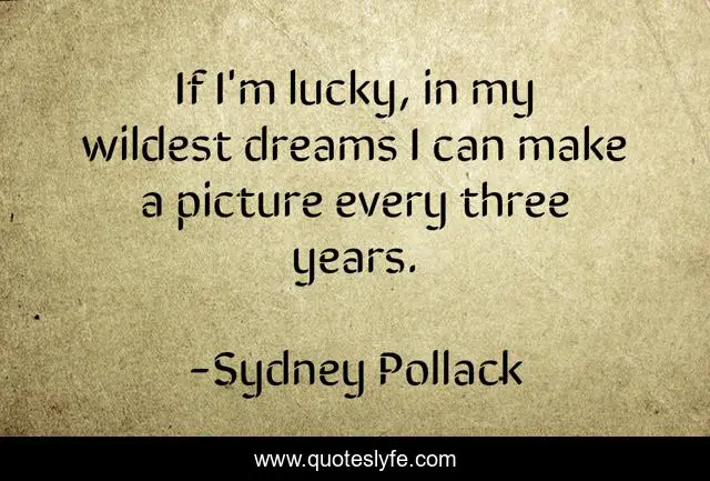 This page presents the quote "If I'm lucky, in my wildest dreams I can make a picture every three years.". Author of this quote is Sydney Pollack. This quote is about picture, lucky, three,.