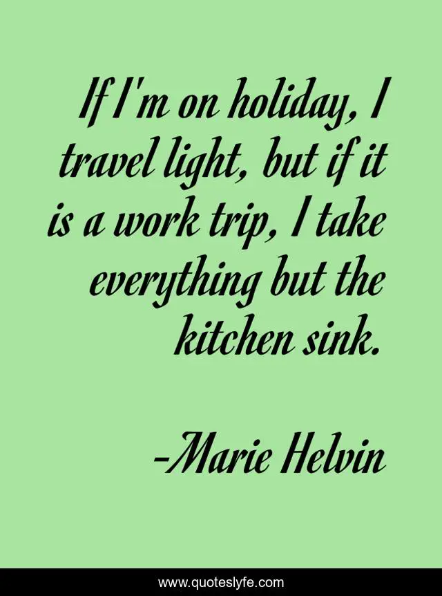 This page presents the quote "If I'm on holiday, I travel light, but if it is a work trip, I take everything but the kitchen sink.". Author of this quote is Marie Helvin. This quote is about light, work, holiday,.