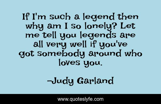 This page presents the quote "If I'm such a legend then why am I so lonely? Let me tell you legends are all very well if you've got somebody around who loves you.". Author of this quote is Judy Garland. .