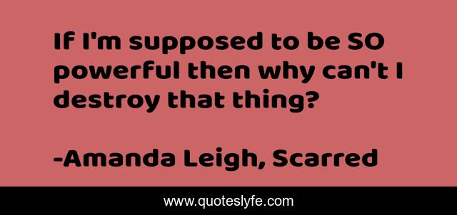 This page presents the quote "If I'm supposed to be SO powerful then why can't I destroy that thing?". Author of this quote is Amanda Leigh, Scarred. This quote is about vampires, ya, na, pnr, vampires-paranormal-romance, witches,.