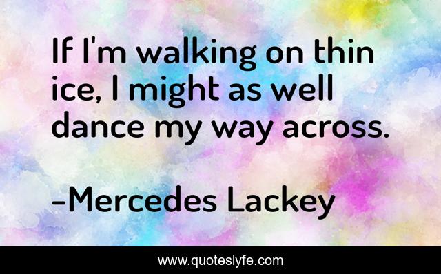This page presents the quote "If I'm walking on thin ice, I might as well dance my way across.". Author of this quote is Mercedes Lackey. .