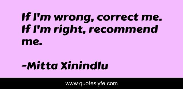 This page presents the quote "If I'm wrong, correct me. If I'm right, recommend me.". Author of this quote is Mitta Xinindlu. This quote is about quotes, life, mitta-xinindlu, self-improvement,.