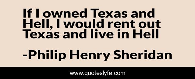 This page presents the quote "If I owned Texas and Hell, I would rent out Texas and live in Hell". Author of this quote is Philip Henry Sheridan. This quote is about humor, humour, union, civil-war, philip-h-sheridan, hell, texas,.