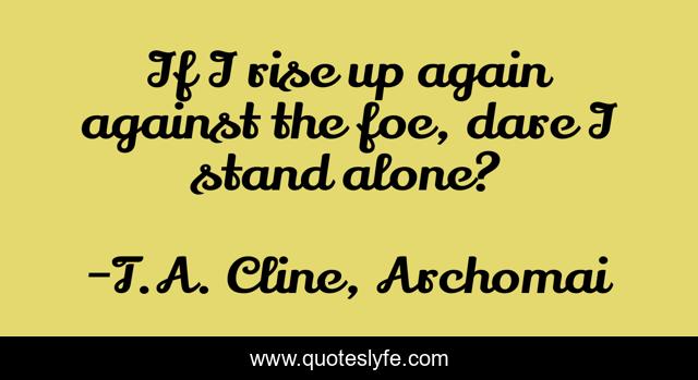 This page presents the quote "If I rise up again against the foe, dare I stand alone?". Author of this quote is T.A. Cline, Archomai. This quote is about courage, self-sacrifice, honor, bravery,.