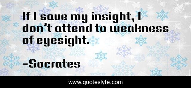 This page presents the quote "If I save my insight, I don’t attend to weakness of eyesight.". Author of this quote is Socrates. This quote is about eyesight, books, socrates,.