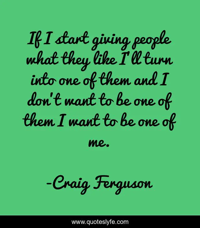 This page presents the quote "If I start giving people what they like I'll turn into one of them and I don't want to be one of them I want to be one of me.". Author of this quote is Craig Ferguson. .