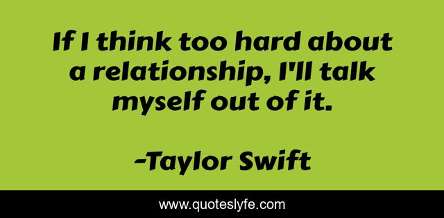 This page presents the quote "If I think too hard about a relationship, I'll talk myself out of it.". Author of this quote is Taylor Swift. This quote is about myself, think, talk,.