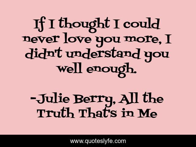 This page presents the quote "If I thought I could never love you more, I didn't understand you well enough.". Author of this quote is Julie Berry, All the Truth That's in Me. This quote is about love, affection, understanding,.