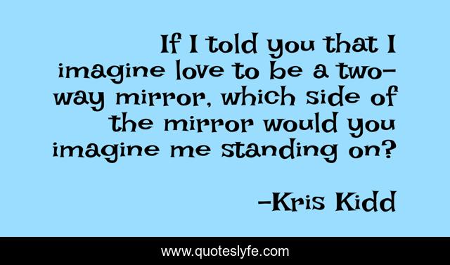 This page presents the quote "If I told you that I imagine love to be a two-way mirror, which side of the mirror would you imagine me standing on?". Author of this quote is Kris Kidd. This quote is about relationships, love, affection,.