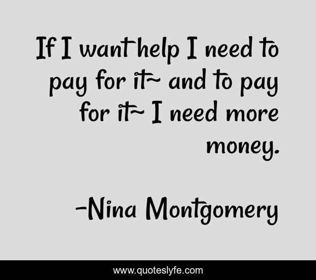 This page presents the quote "If I want help I need to pay for it~ and to pay for it~ I need more money.". Author of this quote is Nina Montgomery. .