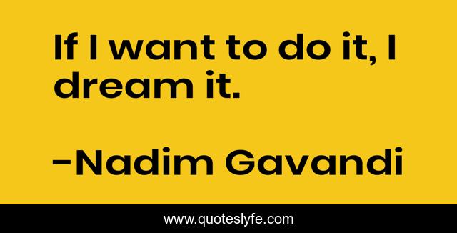 This page presents the quote "If I want to do it, I dream it.". Author of this quote is Nadim Gavandi. .