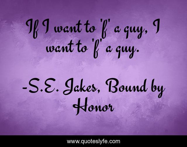 This page presents the quote "If I want to 'f' a guy, I want to 'f' a guy.". Author of this quote is S.E. Jakes, Bound by Honor. This quote is about action, drama, romance, suspense, mm,.