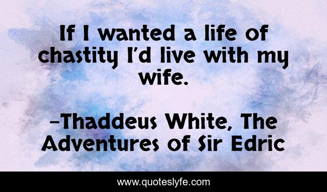 This page presents the quote "If I wanted a life of chastity I’d live with my wife.". Author of this quote is Thaddeus White, The Adventures of Sir Edric. This quote is about fantasy, humour,.