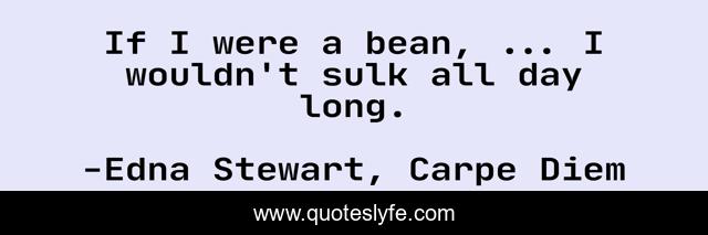 "Edna Stewart, Carpe Diem Quotes." Quoteslyfe.com, 2025. Sat. 06 Dec. 2025. <https://www.quoteslyfe.com/quote/If-I-were-a-bean-I-wouldn-181948>.