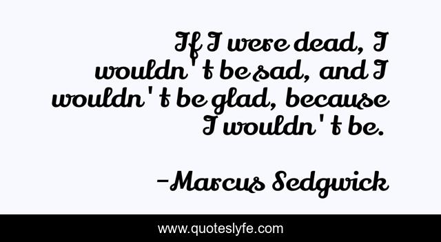 This page presents the quote "If I were dead, I wouldn't be sad, and I wouldn't be glad, because I wouldn't be.". Author of this quote is Marcus Sedgwick. This quote is about poem, gothic,.