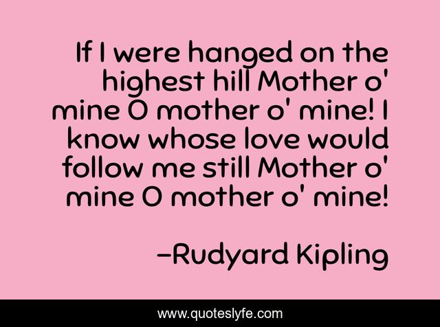 This page presents the quote "If I were hanged on the highest hill Mother o' mine O mother o' mine! I know whose love would follow me still Mother o' mine O mother o' mine!". Author of this quote is Rudyard Kipling. .