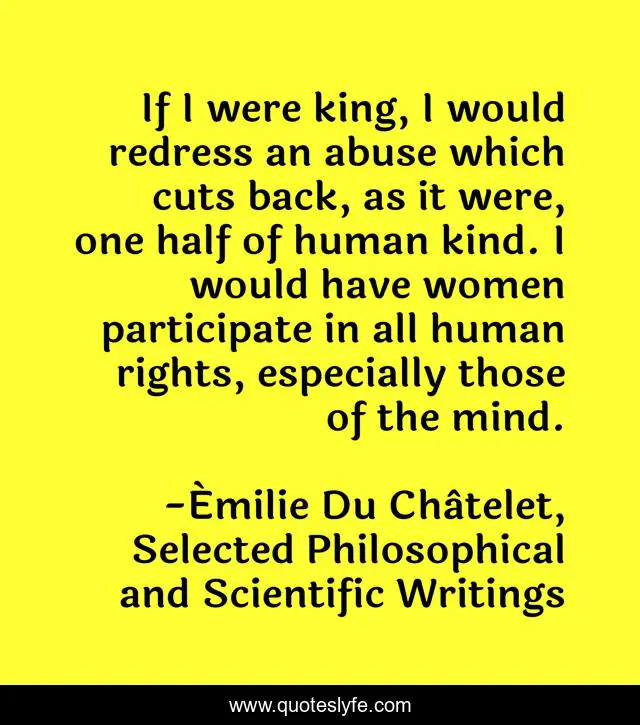 "Émilie Du Châtelet, Selected Philosophical and Scientific Writings Quotes." Quoteslyfe.com, 2025. Tue. 09 Dec. 2025. <https://www.quoteslyfe.com/quote/If-I-were-king-I-would-redress-280508>.