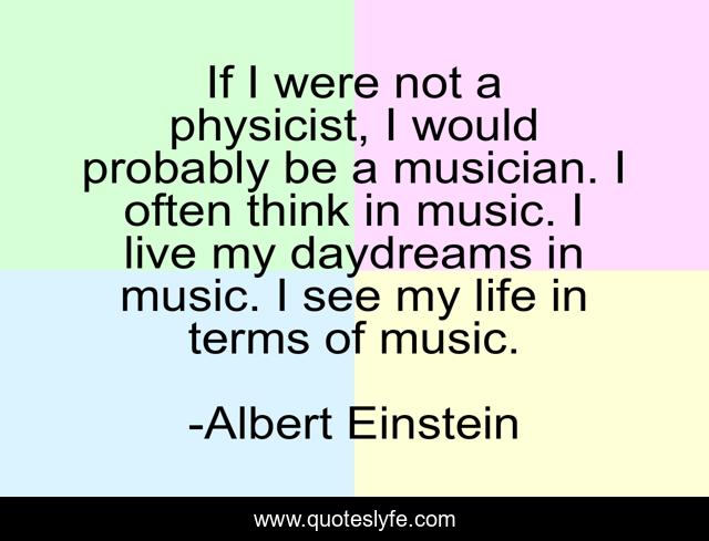 This page presents the quote "If I were not a physicist, I would probably be a musician. I often think in music. I live my daydreams in music. I see my life in terms of music.". Author of this quote is Albert Einstein. .