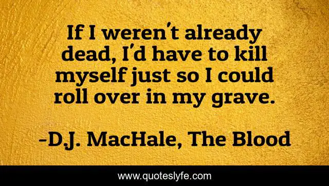 This page presents the quote "If I weren't already dead, I'd have to kill myself just so I could roll over in my grave.". Author of this quote is D.J. MacHale, The Blood. This quote is about death, humor, grave,.