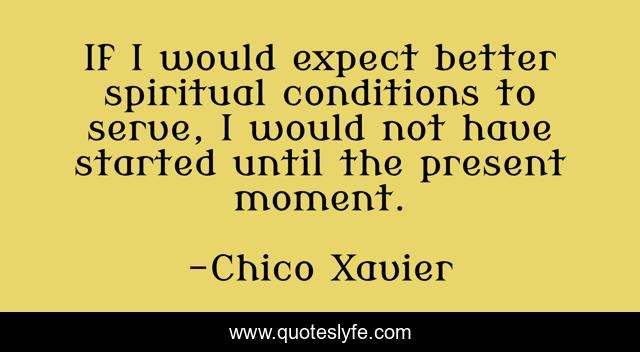 This page presents the quote "If I would expect better spiritual conditions to serve, I would not have started until the present moment.". Author of this quote is Chico Xavier. .