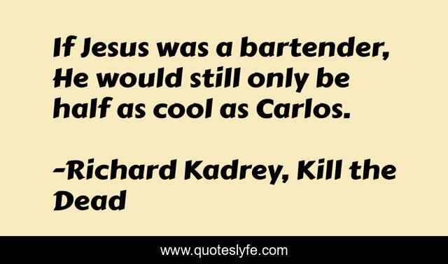 This page presents the quote "If Jesus was a bartender, He would still only be half as cool as Carlos.". Author of this quote is Richard Kadrey, Kill the Dead. This quote is about bartender, jesus,.