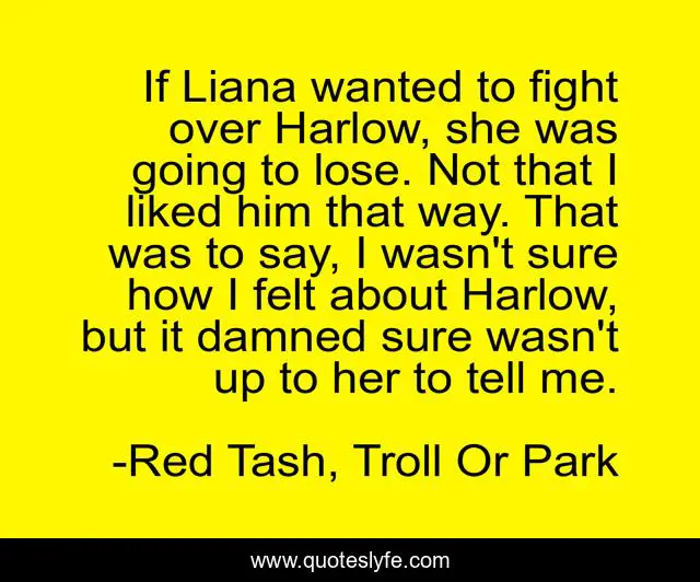 "Red Tash, Troll Or Park Quotes." Quoteslyfe.com, 2025. Sun. 07 Dec. 2025. <https://www.quoteslyfe.com/quote/If-Liana-wanted-to-fight-over-Harlow-148848>.