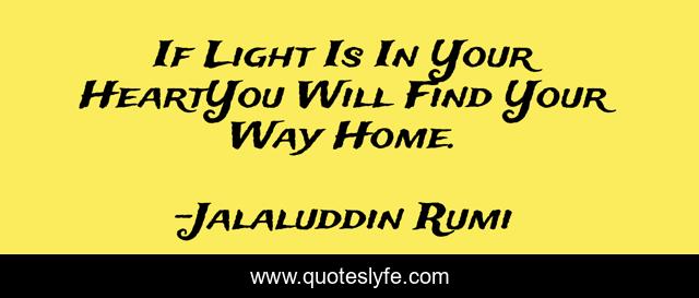 This page presents the quote "If Light Is In Your HeartYou Will Find Your Way Home.". Author of this quote is Jalaluddin Rumi. This quote is about heart, home,.