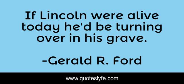 This page presents the quote "If Lincoln were alive today he'd be turning over in his grave.". Author of this quote is Gerald R. Ford. This quote is about gaffe, politicians, dumb, oxymoron,.