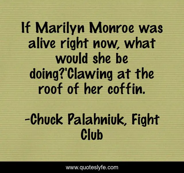 "Chuck Palahniuk, Fight Club Quotes." Quoteslyfe.com, 2025. Fri. 05 Dec. 2025. <https://www.quoteslyfe.com/quote/If-Marilyn-Monroe-was-alive-right-now-6831>.