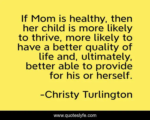 This page presents the quote "If Mom is healthy, then her child is more likely to thrive, more likely to have a better quality of life and, ultimately, better able to provide for his or herself.". Author of this quote is Christy Turlington. This quote is about life, quality, child,.