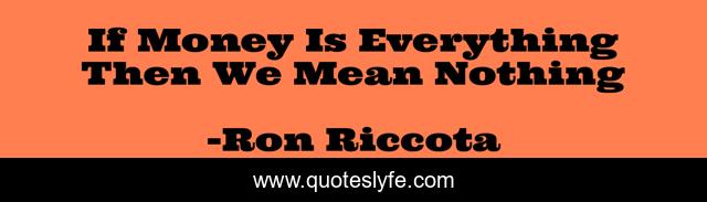 This page presents the quote "If Money Is Everything Then We Mean Nothing". Author of this quote is Ron Riccota. .
