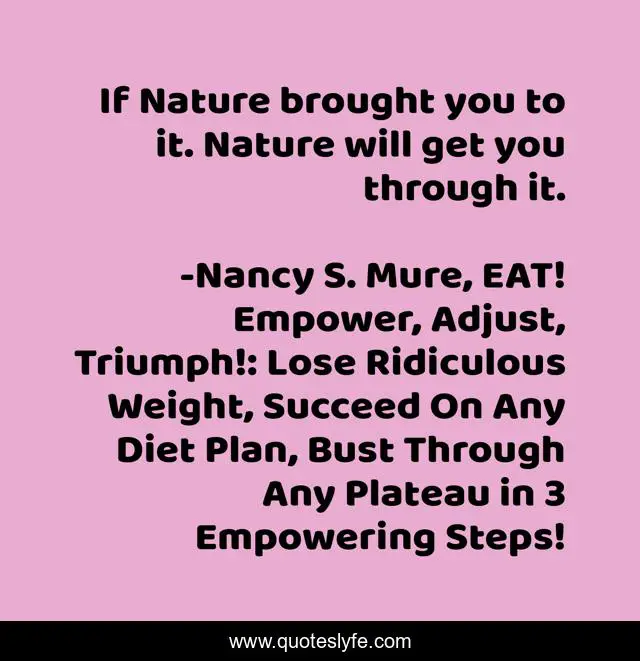 "Nancy S. Mure, EAT! Empower, Adjust, Triumph!: Lose Ridiculous Weight, Succeed On Any Diet Plan, Bust Through Any Plateau in 3 Empowering Steps! Quotes." Quoteslyfe.com, 2025. Fri. 05 Dec. 2025. <https://www.quoteslyfe.com/quote/If-Nature-brought-you-to-it-Nature-72913>.