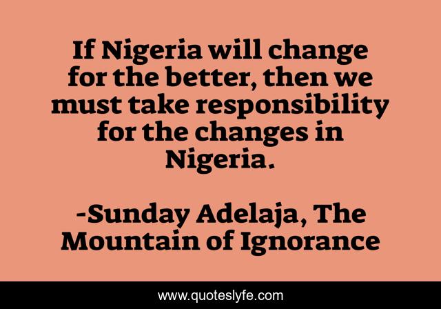 "Sunday Adelaja, The Mountain of Ignorance Quotes." Quoteslyfe.com, 2025. Sat. 06 Dec. 2025. <https://www.quoteslyfe.com/quote/If-Nigeria-will-change-for-the-better-31055>.