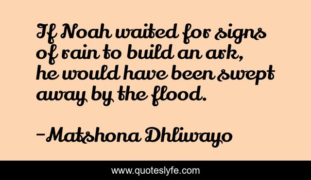 "Matshona Dhliwayo Quotes." Quoteslyfe.com, 2025. Sat. 06 Dec. 2025. <https://www.quoteslyfe.com/quote/If-Noah-waited-for-signs-of-rain-58167>.