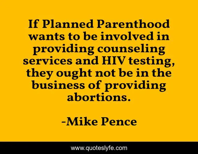 This page presents the quote "If Planned Parenthood wants to be involved in providing counseling services and HIV testing, they ought not be in the business of providing abortions.". Author of this quote is Mike Pence. This quote is about involved, testing, planned,.