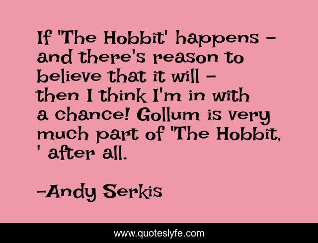 This page presents the quote "If 'The Hobbit' happens - and there's reason to believe that it will - then I think I'm in with a chance! Gollum is very much part of 'The Hobbit, ' after all.". Author of this quote is Andy Serkis. This quote is about reason, believe, think,.