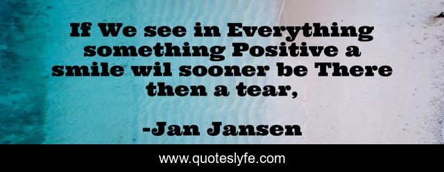 This page presents the quote "If We see in Everything something Positive a smile wil sooner be There then a tear, ". Author of this quote is Jan Jansen. .