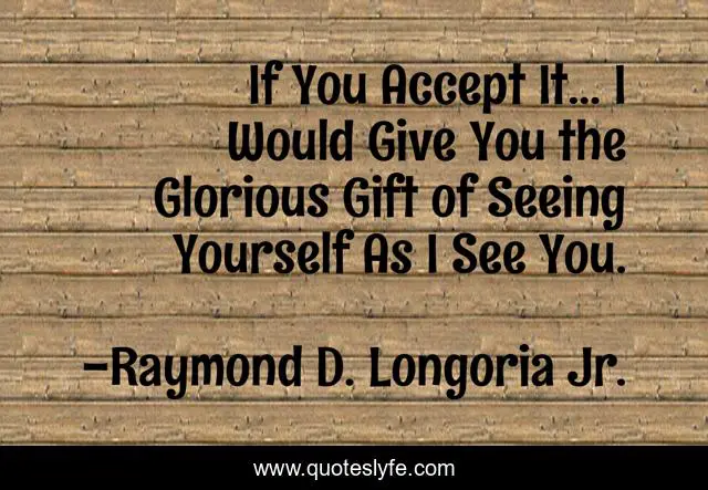 This page presents the quote "If You Accept It... I Would Give You the Glorious Gift of Seeing Yourself As I See You.". Author of this quote is Raymond D. Longoria Jr.. This quote is about life, freedom, peace, spiritual, soul, change, purpose, self-help, friendship,.