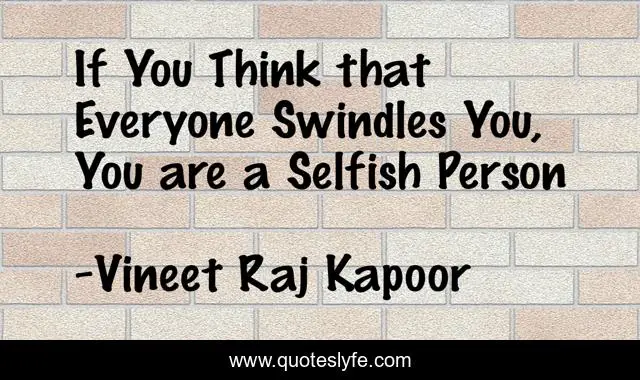 This page presents the quote "If You Think that Everyone Swindles You, You are a Selfish Person". Author of this quote is Vineet Raj Kapoor. This quote is about reality-of-life, hurt, ego, selfishness, mindset, vanity,.