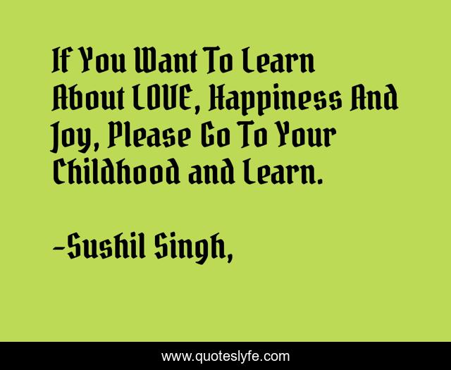 This page presents the quote "If You Want To Learn About LOVE, Happiness And Joy, Please Go To Your Childhood and Learn.". Author of this quote is Sushil Singh, व्यस्त लोगों के लिये ध्यान. This quote is about happiness, love, childhood, affection,.