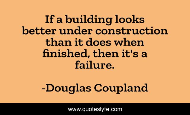 This page presents the quote "If a building looks better under construction than it does when finished, then it's a failure.". Author of this quote is Douglas Coupland. This quote is about building, construction,.
