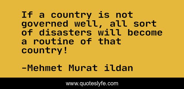 This page presents the quote "If a country is not governed well, all sort of disasters will become a routine of that country!". Author of this quote is Mehmet Murat ildan. This quote is about disaster, government, country, governed, murat-ildan-words, routine, disasters,.