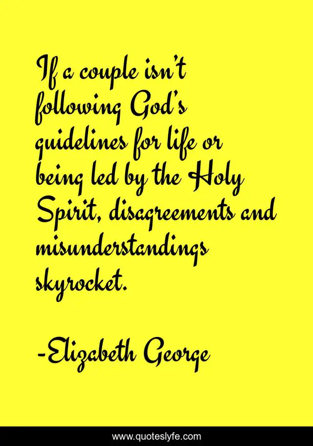 This page presents the quote "If a couple isn’t following God’s guidelines for life or being led by the Holy Spirit, disagreements and misunderstandings skyrocket.". Author of this quote is Elizabeth George. This quote is about god, couple, adivce, elizabeth-george, marriage, christian-living, god-s-love,.