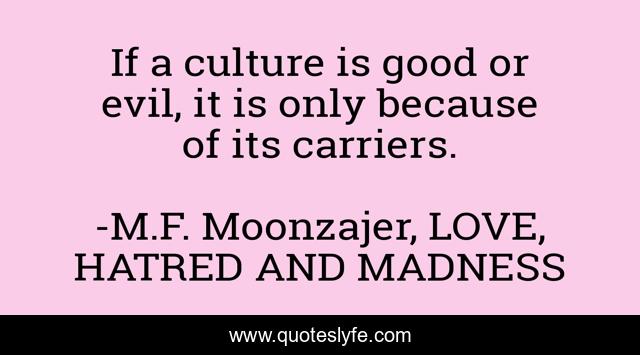 "M.F. Moonzajer, LOVE, HATRED AND MADNESS Quotes." Quoteslyfe.com, 2025. Sat. 06 Dec. 2025. <https://www.quoteslyfe.com/quote/If-a-culture-is-good-or-evil-154434>.