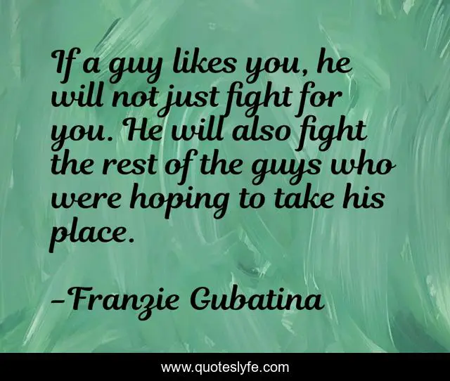 This page presents the quote "If a guy likes you, he will not just fight for you. He will also fight the rest of the guys who were hoping to take his place.". Author of this quote is Franzie Gubatina. This quote is about guys, like, fight,.